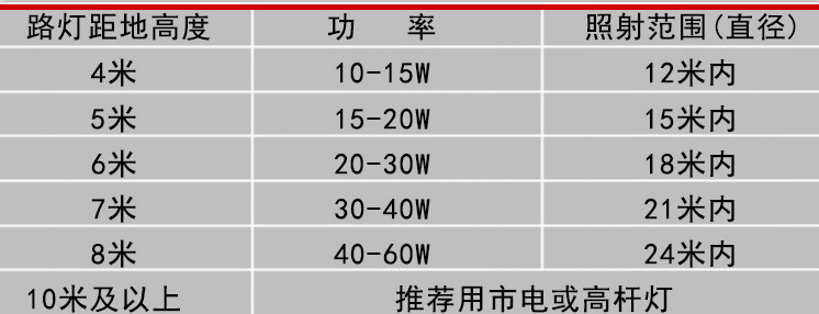 常規(guī)鋰電池太陽能路燈價格表